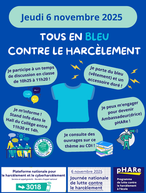 Le jeudi 6 novembre 2025 : tous unis contre le harcèlement scolaire !